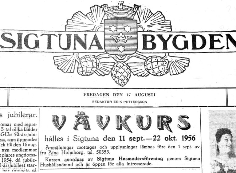 Sigtuna Husmodersförening hade via en annons bjudit in till vävkurs. Fru Kate Grähs var ledare och åtta kvinnor deltog i kursen.