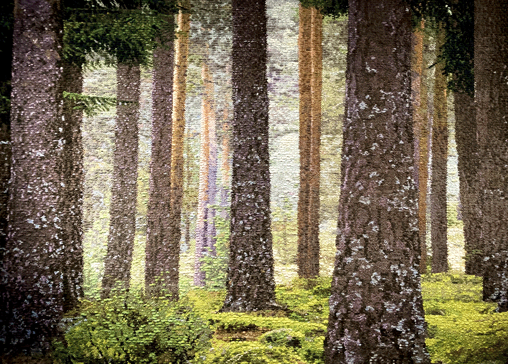 Folksam har beställt en vävnad av Lars Lerins verk ”Burfåglar” som Handarbetets Vänner visade upp.